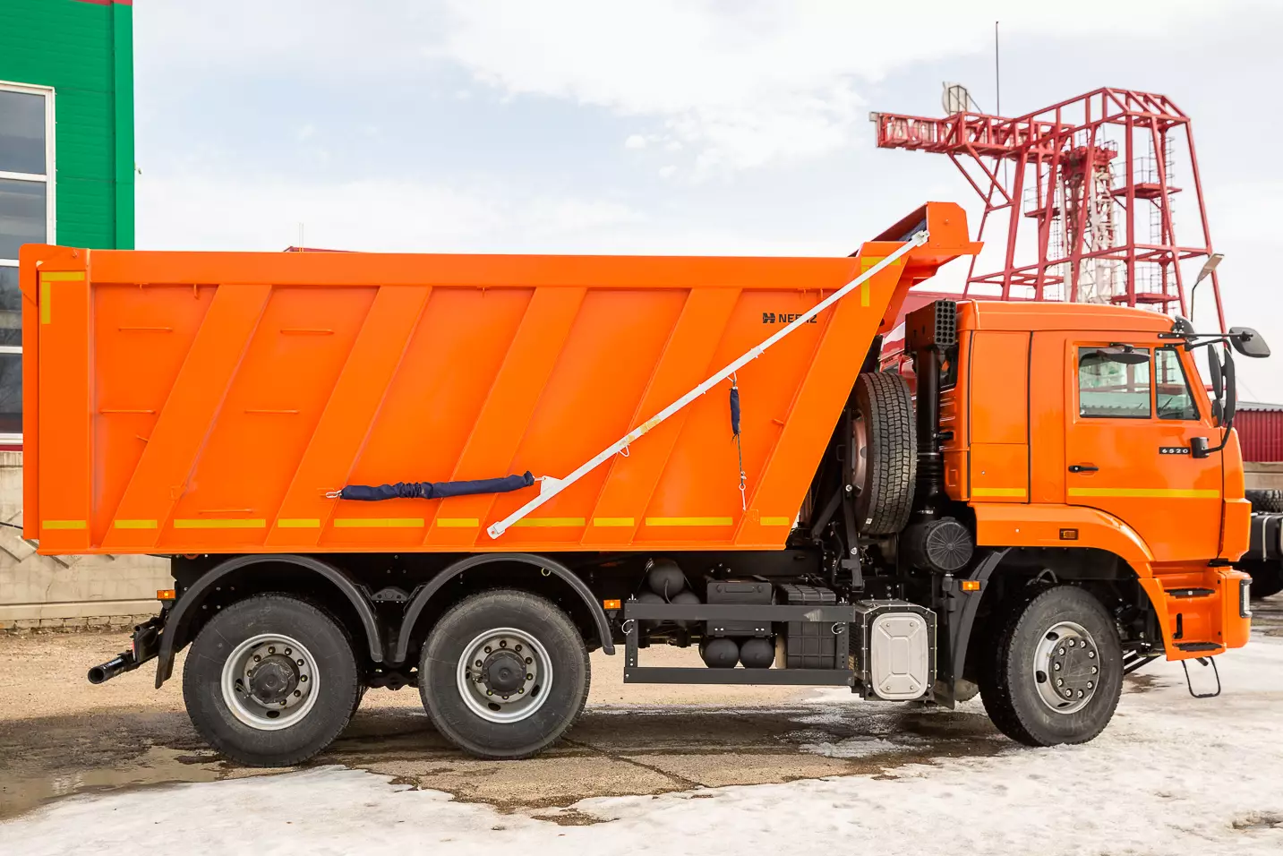 В продаже новый самосвал KAMAZ-6520-7080-49 с задней разгрузкой, объем самосвальной платформы 20 куб. м. Колесная формула 6х4.