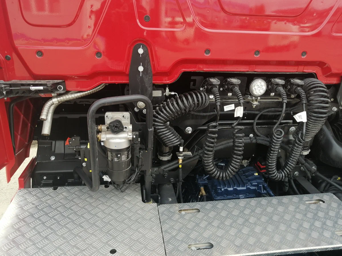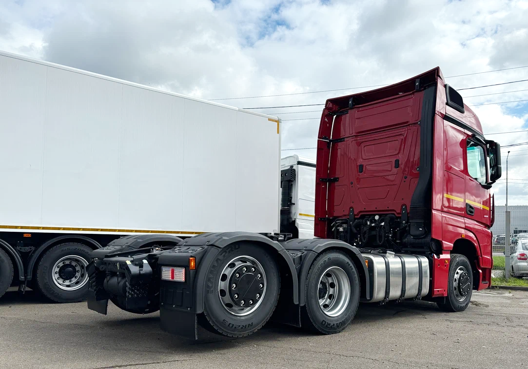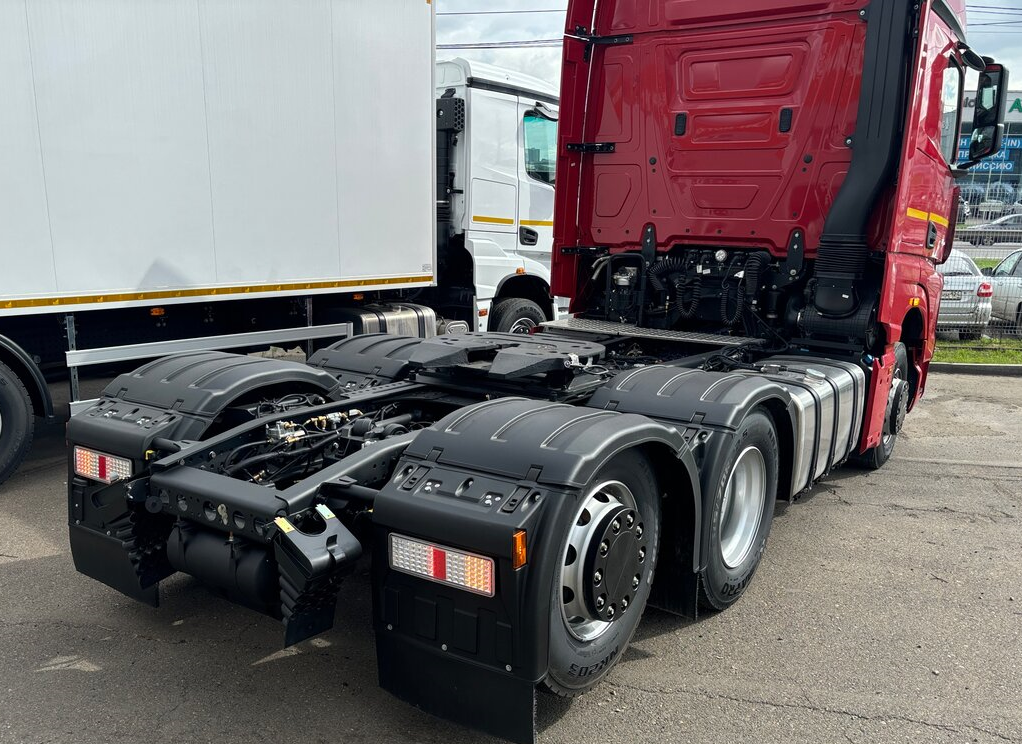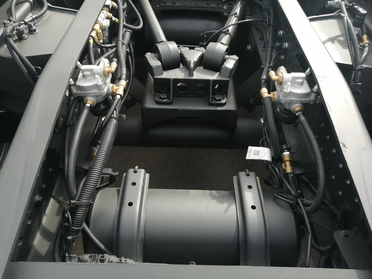 Новый седельный тягач KAMAZ-65659-70018-CA (6х2) оснащен подъемной задней осью, что делает его универсальным решением. Когда груза нет, ось поднимается, что обеспечивает экономию топлива, уменьшает износ резины и улучшает маневренность, как у тягачей 4х2. А при полной загрузке ось опускается, принимая на себя часть веса груза. Это также позволяет снизить риск штрафов, оптимально распределяя нагрузку по осям.