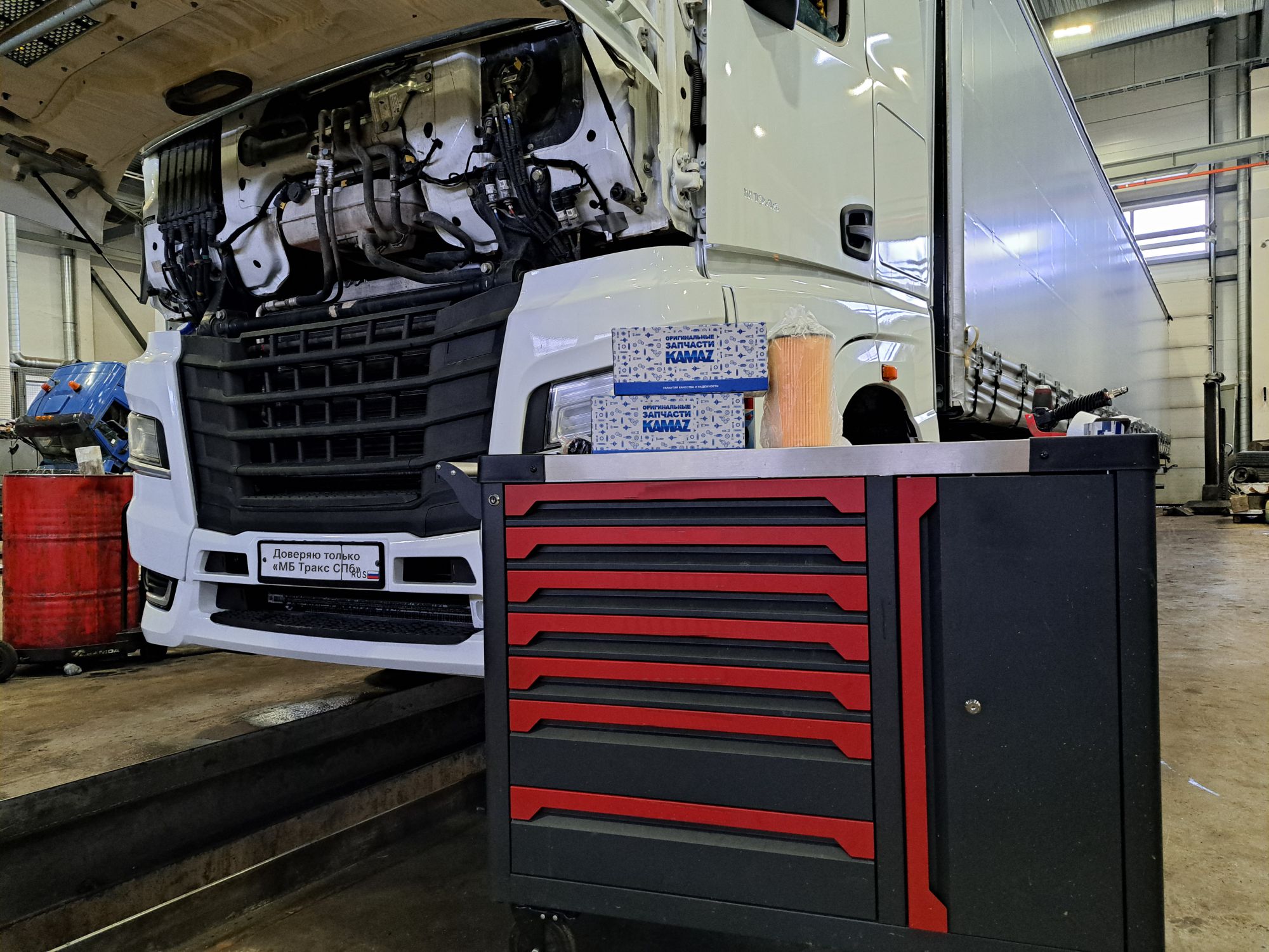 Ремонт грузовика в "МБ Тракс СПБ" - официальном дилерском центре ПАО «КАМАЗ» - это, в первую очередь, качество и надежность.Наш автоцентр - это более 3 тыс. кв. м. производственных площадей, предназначенных для обслуживания грузовой техники. Длина ремонтных постов позволяет проводить ремонт и обслуживание как тягачей, так и автопоездов. Пока грузовик в ремонте, вы или ваши водители могут ожидать его в комфортной зоне отдыха.