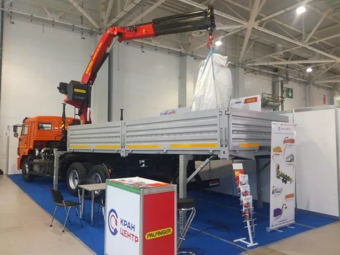 В числе экспонатов была представлена новейшая разработка «КРАН центра «КАМАЗ» – автомобиль специальный для перевозки сменных кузовов КАМАЗ-65115 со сменным кузовом - бортовой платформой с КМУ Palfinger IM150N. Спецавтотехника для перевозки сменных кузовов является универсальным решением, позволяющим существенно сэкономить затраты на эксплуатацию.
