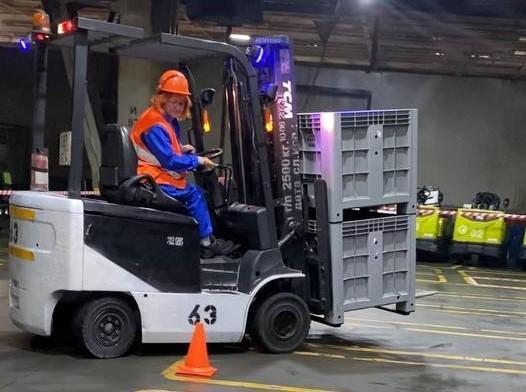 Конкурс профмастерства проводили на площадке цеха транспортно-складских работ логистического центра в субботу, чтобы не нарушать ритм работы производства. Восемь конкурсантов, делегированных с разных участков цеха, сначала отвечали на вопросы теоретического теста. Выбрать правильный ответ из нескольких вариантов помогли знания охраны труда, правил эксплуатации электрокаров, погрузчиков, тягачей и ричтраков. Ограничений по времени не было, но за неверные ответы начислялись штрафные секунды, которые влияли на итоговый результат.