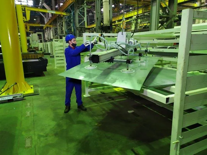 На участке лазерной резки цеха мелких серий прессово-рамного завода «КАМАЗа» ввели в эксплуатацию новые механизированные стеллажи с вакуумным подъёмным устройством.