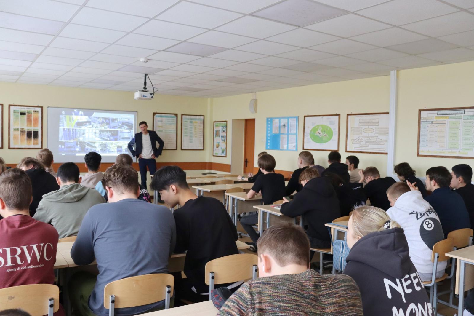 Руководитель группы производственного обучения ООО «СЭТранс» Евгений Русин выступил перед студентами первого курса, которые обучаются по направлению подготовки «Техническое обслуживание и ремонт двигателей, систем и агрегатов автомобилей».