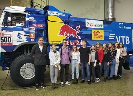 Завершающим пунктом визита стала экскурсия в НП «КАМАЗ-Автоспорт» – место базирования спортивной команды «КАМАЗ-мастер». Ребята смогли увидеть гоночные автомобили, сфотографироваться в музее команды на фоне многочисленных наград и получить автографы известных гонщиков.