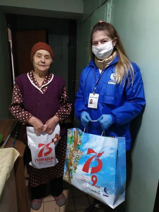 В преддверии празднования Дня Победы в Великой Отечественной войне волонтёры «КАМАЗа» посетили ветеранов и детей войны, в разные годы работавших на автогиганте, и вручили им продуктовые наборы и ценные подарки – тонометры.